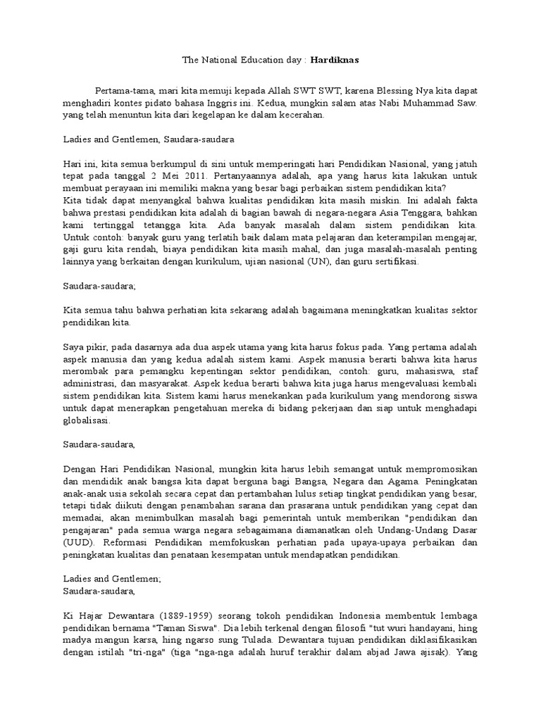 DOC) Contoh pidato bahasa Inggris tentang pendidikan di hari besar pendidikan | chaisya tog - Academia.edu