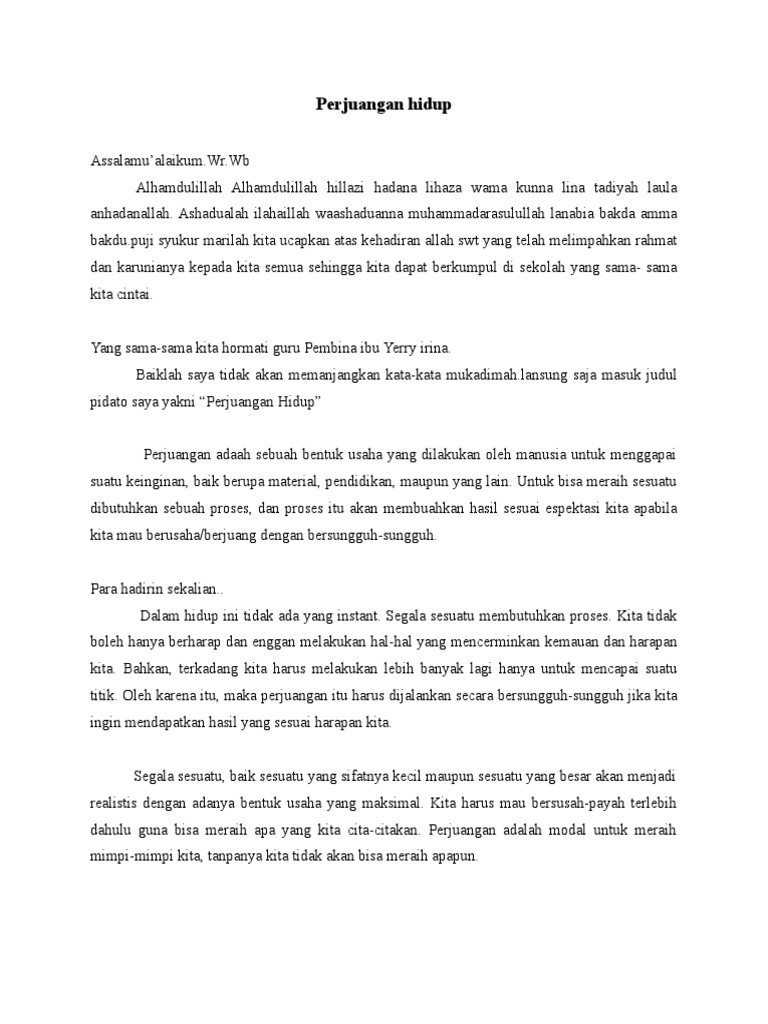 Pidato Perjuangan hidup