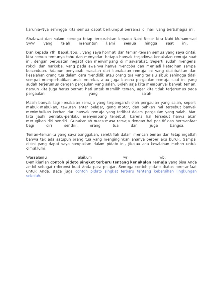 3 Contoh Pidato Singkat Tentang Kenakalan Remaja dan Globalisasi