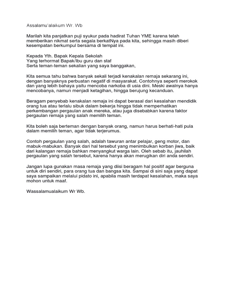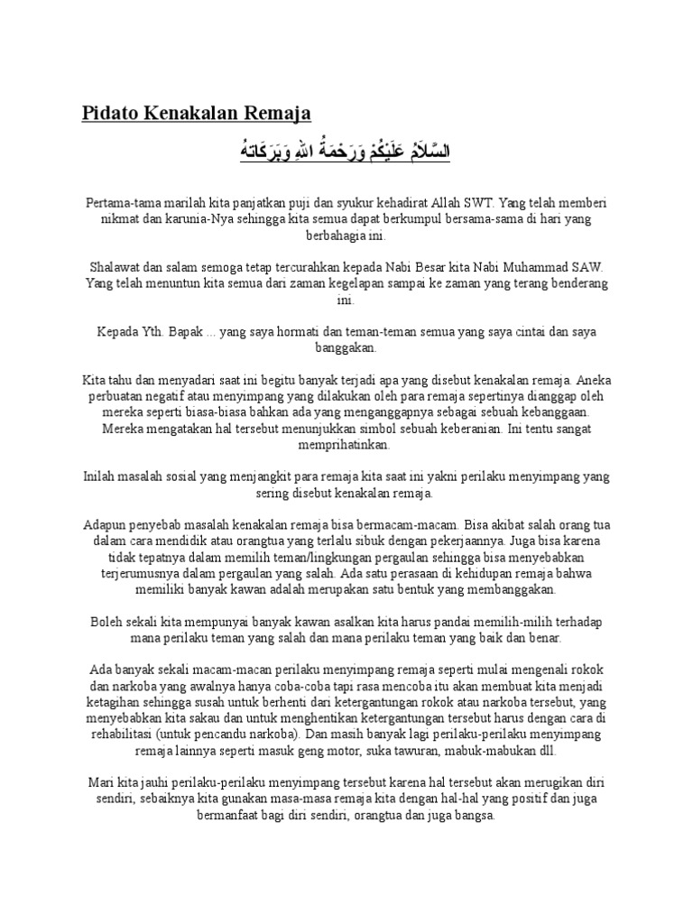 DOC) Pidato Kenakalan Remaja | Muhamad Idris - Academia.edu