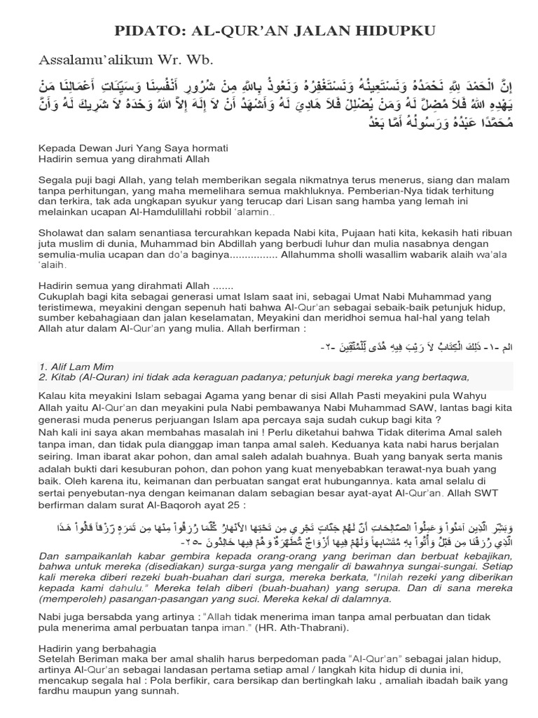 Pidato: Al-Qur’an Jalan Hidupku - Kompasiana.com