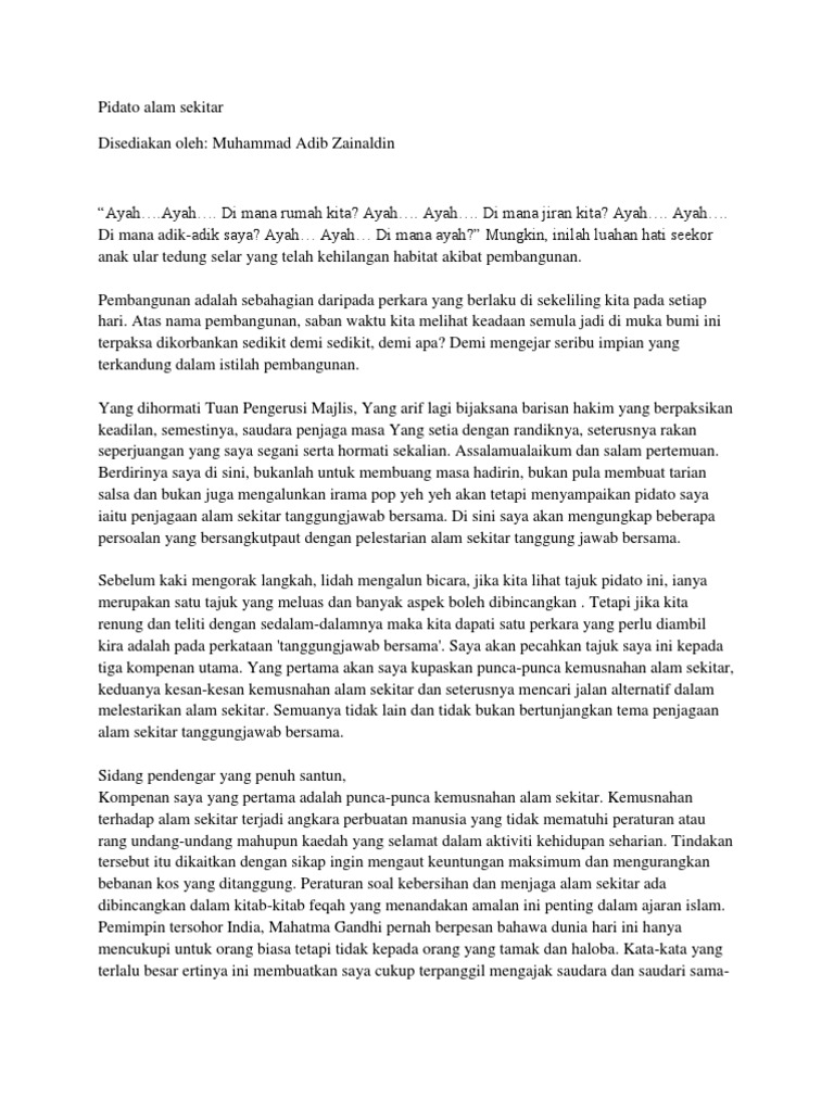 DOC) Pidato Tentang Lingkungan | Fajar Xarjaf - Academia.edu