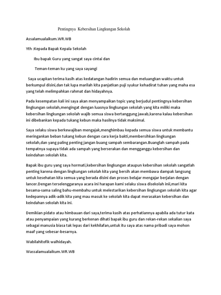DOC) Contoh pidato singkat tentang lingkungan sekolah | Dhlie Razor - Academia.edu