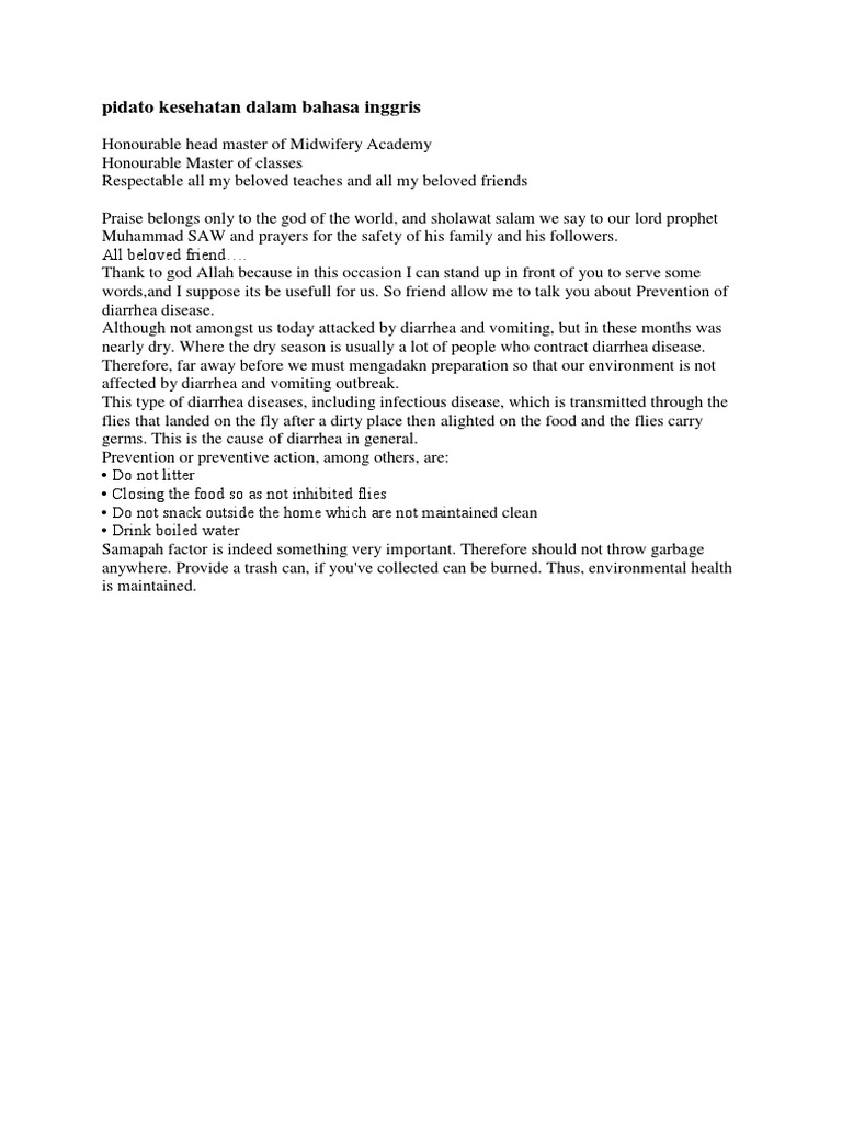 Contoh Naskah Pidato Bahasa Inggris tentang Kesehatan Terbaru dan …