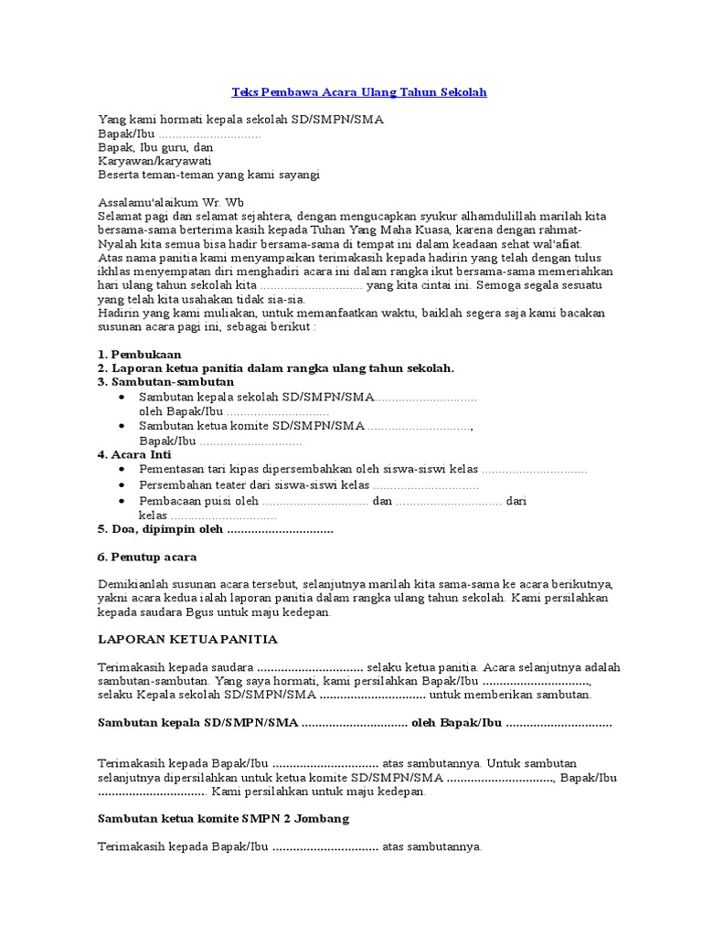 Contoh Teks Pembawa Acara Ulang Tahun Sekolah Dalam Bahasa Sunda Berbagai Teks Penting – cute766