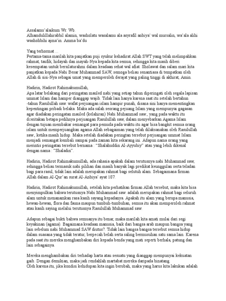 DOC) PIDATO SINGKAT PERINGATAN MAULID NABI MUHAMMAD SAW | daurulang daur - Academia.edu
