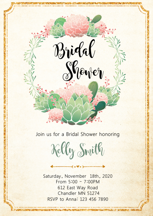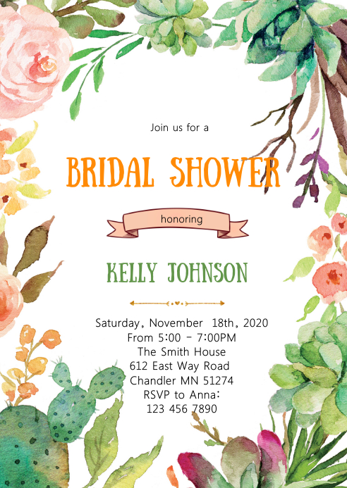Undangan Pesta Pernikahan Shower Kaktus Templat | PosterMyWall
