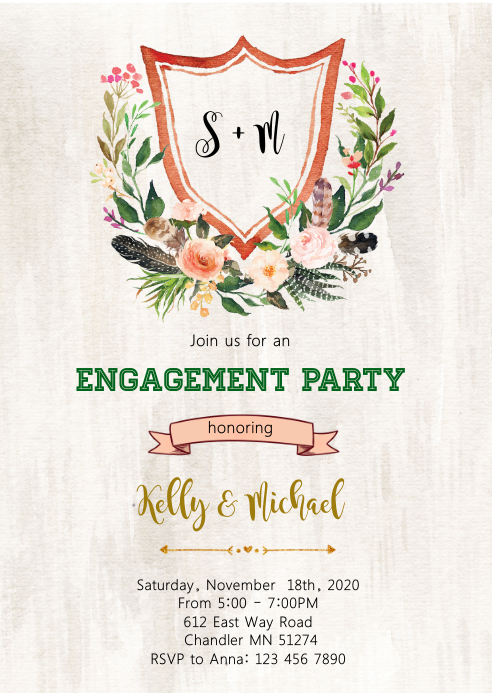 Floral engagement bridal shower invitation Template | PosterMyWall