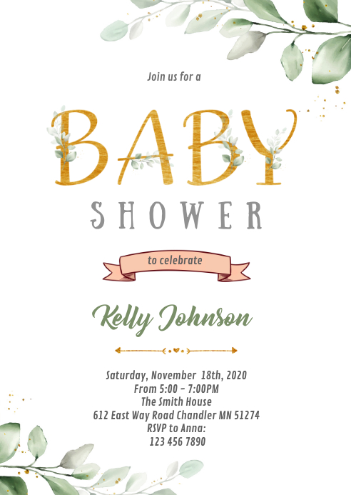 Greenery baby bridal shower invitation Template | PosterMyWall